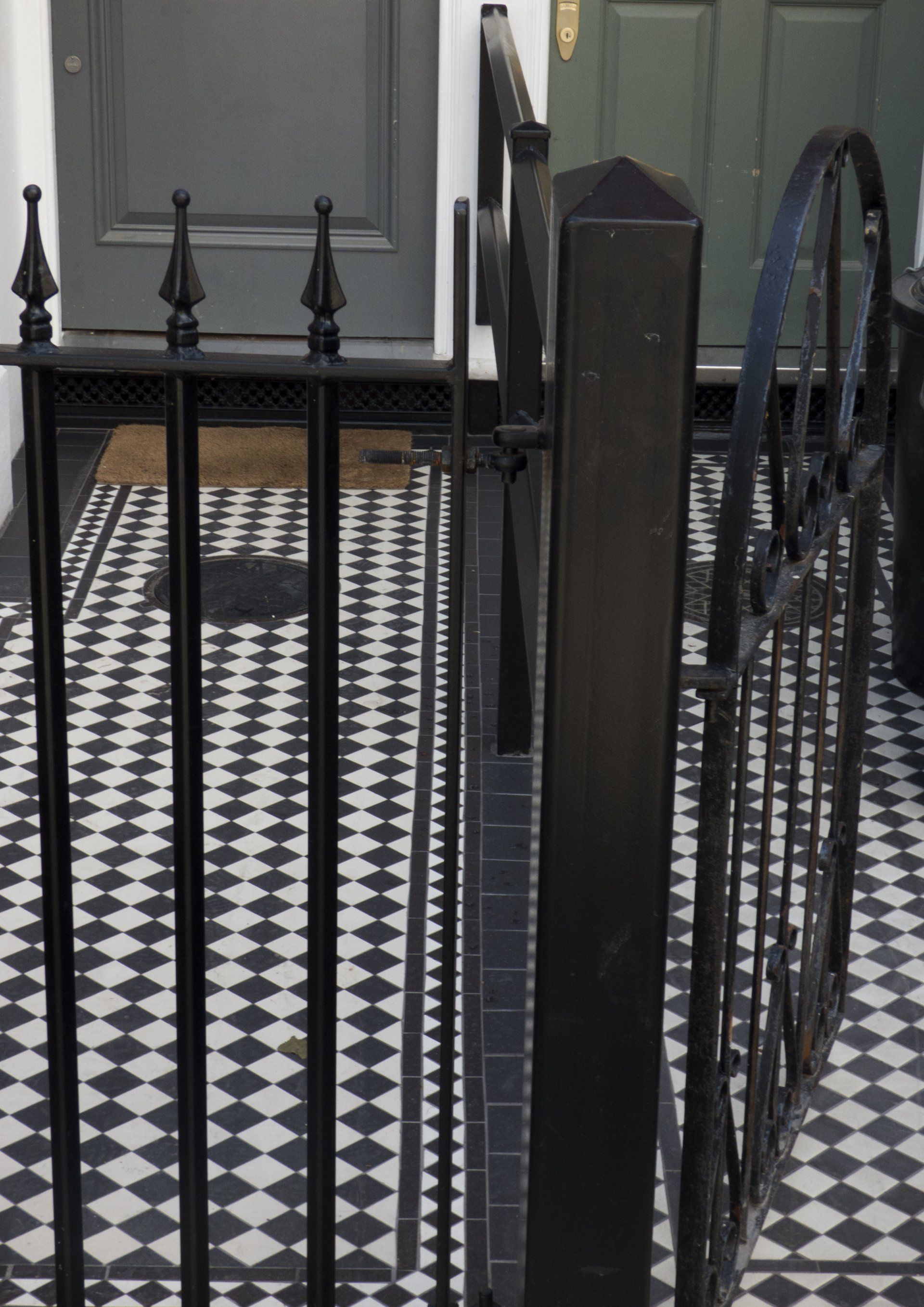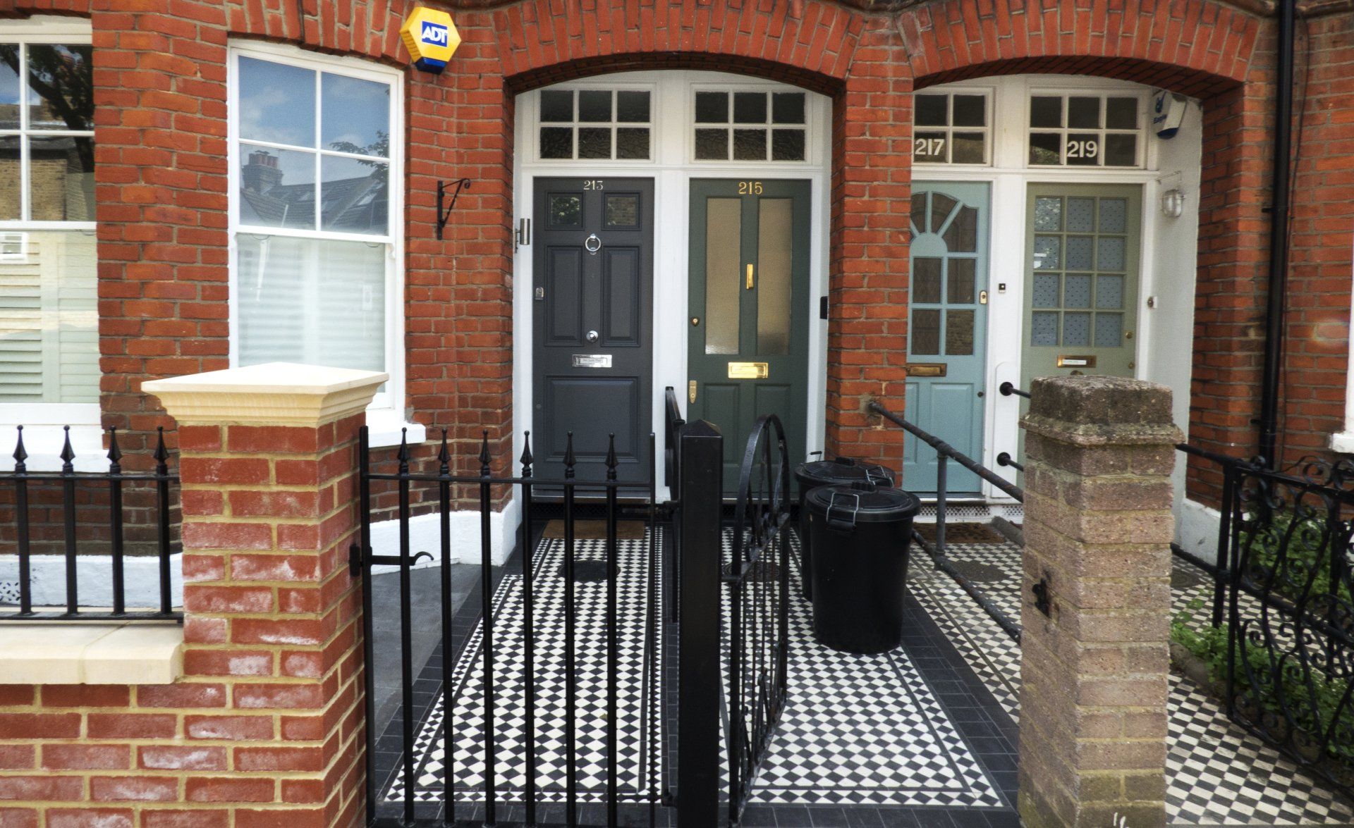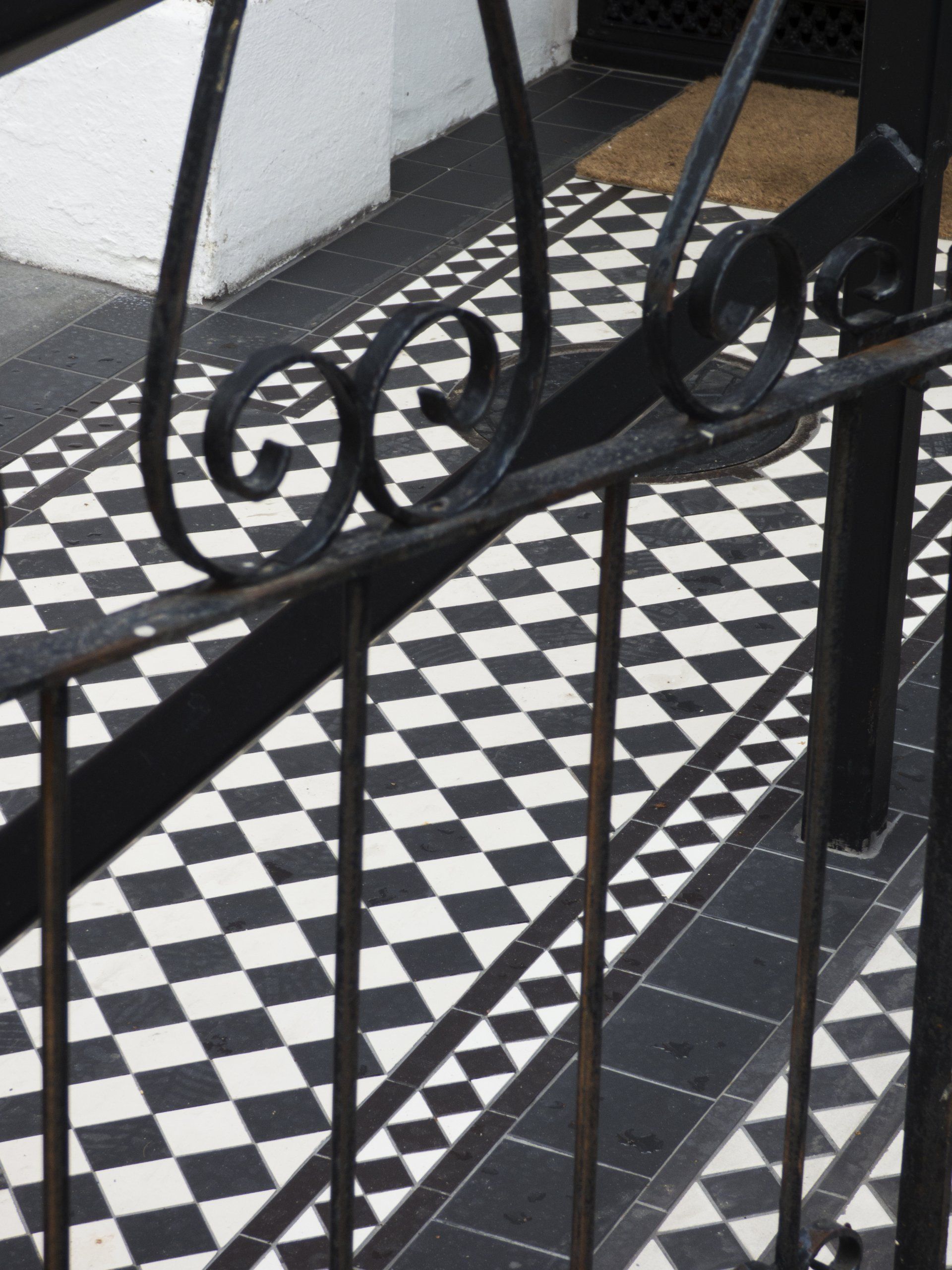 Complete levelling and placement of checkerboard style tiles on two adjacent Putney homes.